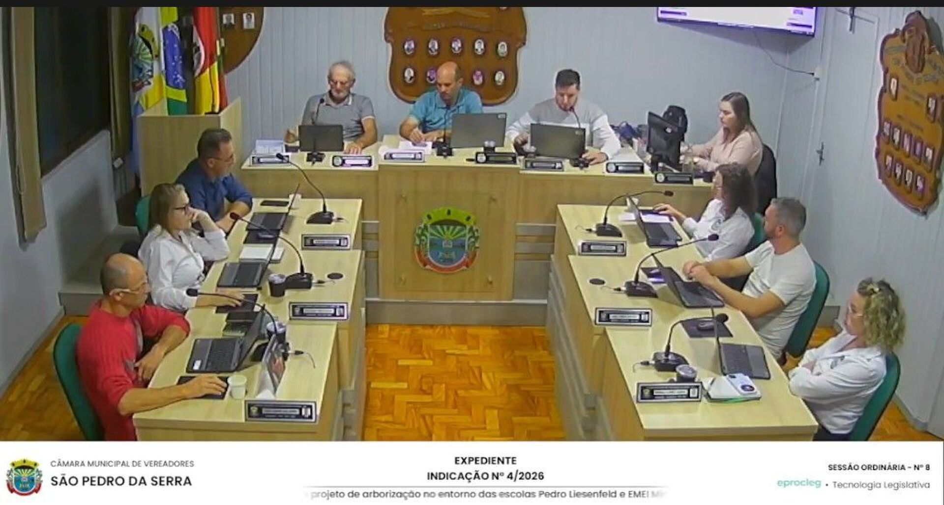 RESUMO DA SESSÃO ORDINÁRIA DO DIA 07/04/2026 MOÇÃO DE PESAR ao falecimento de Affonso José Werner NOTIFICAÇÃO N° 01/2026 - Votação das contas anuais de 2022 dos Administradores do executivo Municipal de São Pedro da Serra . INDICAÇÃO N° 03/2026 - Autor Vereador Daniel Inacio Reichert - Indica ao executivo analisar a possibilidade de instalação de placa solares. INDICAÇÃO N° 04/2026 - Autor Vereador Carlos Adriano Schlindwein - sugere a implantação de um projeto de arborização no entorno das escolas Pedro Lisenfeld e EMEI Mimo. OFICIO RESPOSTA N° 26/2026. INDICAÇÃO N° 11/2025 - Ofício resposta a indicação 11/2025. OFICIO RESPOSTA N° 27/2026. PEDIDO DE PROVIDENCIA N° 06/2025 - Ofício resposta ao Pedido de providência n° 06/2026. CORRESPONDÊNCIA RECEBIDA N° 10/2026 Ofício CLJ - Convite para tradicional Bingo que ocorrerá no dia 09/05/2026. VOTAÇÃO DA MOÇÃO DE PESAR N° 01/ 2026.